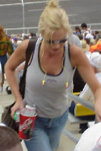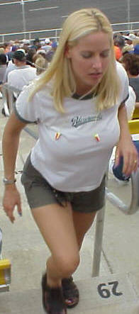 Brian accompanied me to the Belterra Resort and Casino 300 today. The Kentucky Speedway is a new track that opened this year and is nestled a little south of Indiana in Kentucky, between Cincinatti and Louisville. It is 1.5 miles around this tri-oval. It is kind of sunk down into the hilly Kentucky countryside and it's curves are pretty flat compared to most Nascar ovals. This year, Nascar trucks and Arca are also racing at this facility.