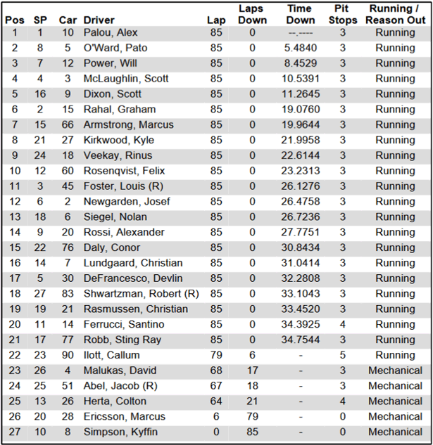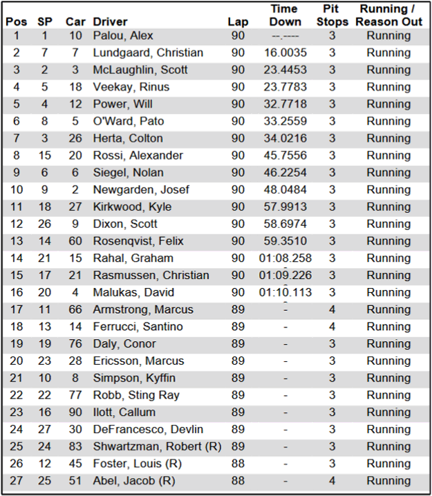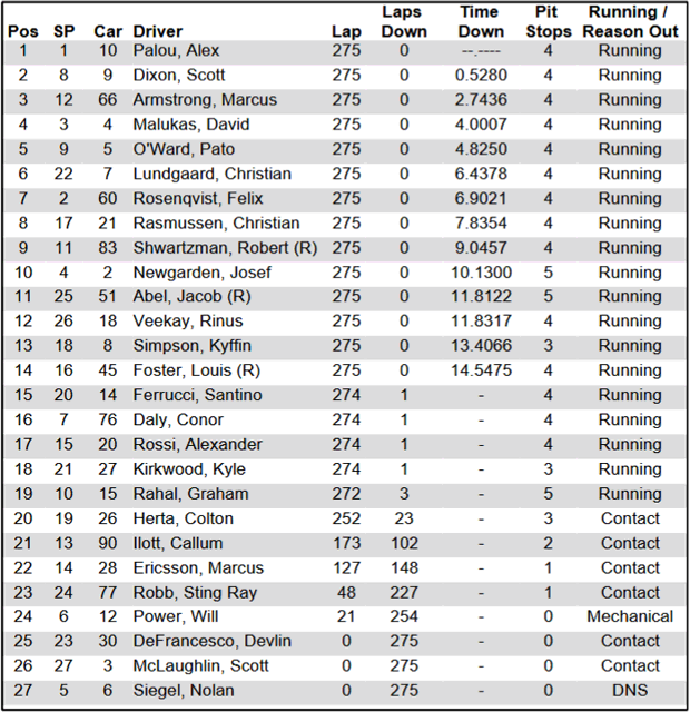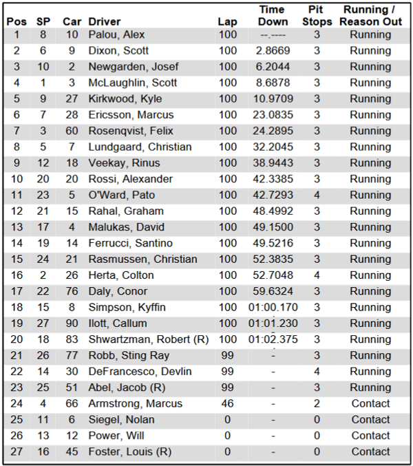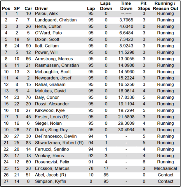 | 2 115.163 mph 122.732 mph Palou 7 among 4 drivers |