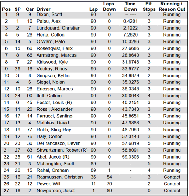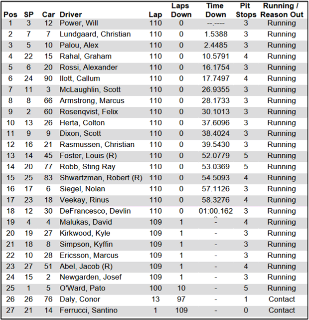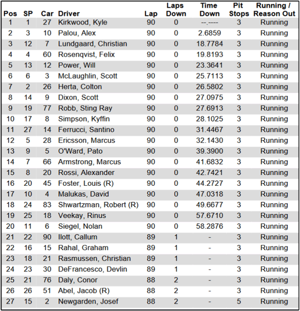 | 12 116.696 mph 135.327 - Rosenqvist 11 among 9 drivers |