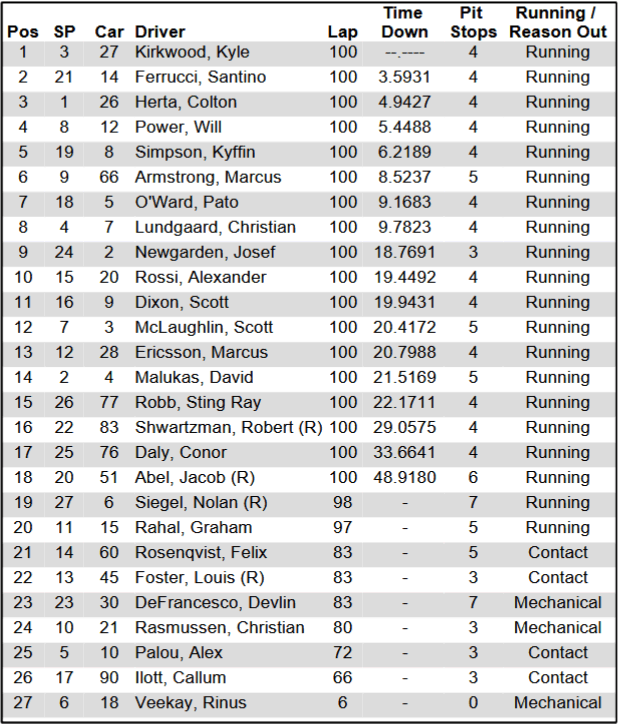 | 20 88.972 mph 104.285 - Herta 6 among 5 drivers |