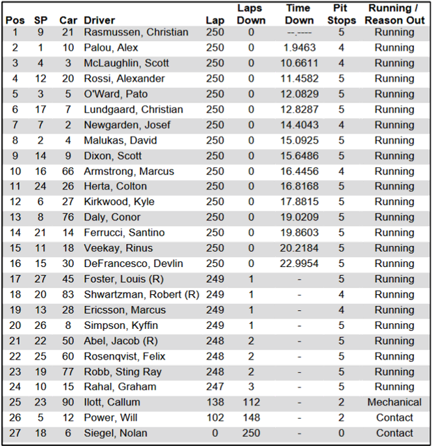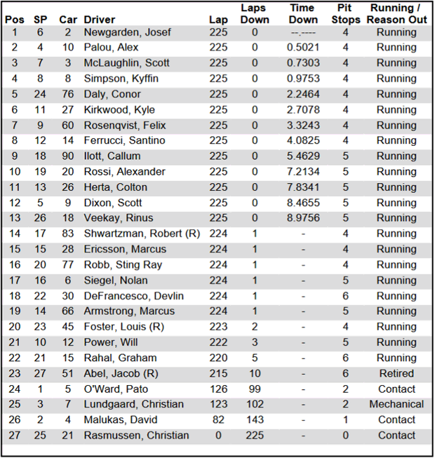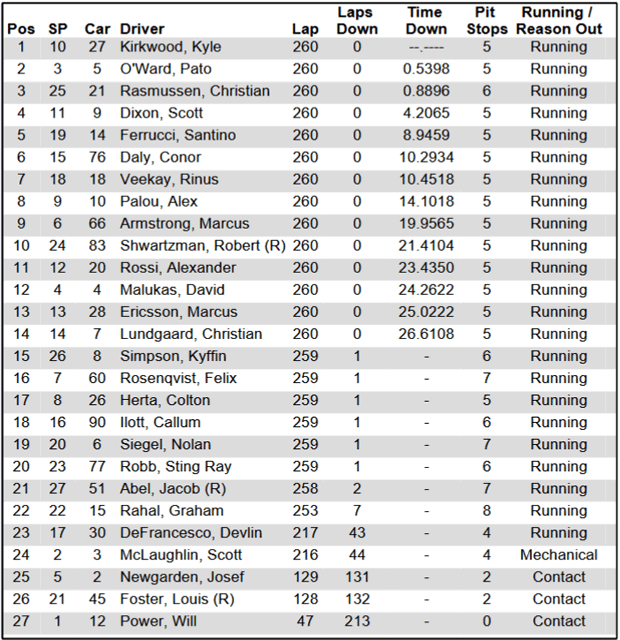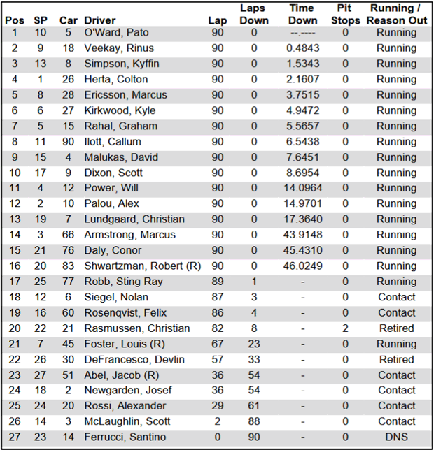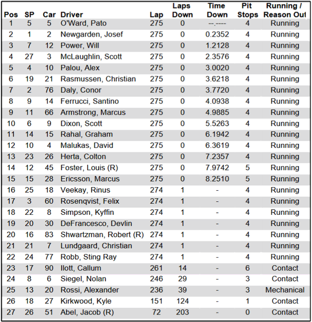 | 47 139.146 mph 178.631 - O'Ward 5 among 5 drivers |