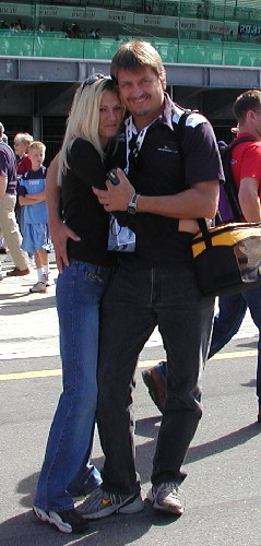 | By some coincidence, I ran into my friend Dave just as I was entering the pit lane. I don't know who that girl is; she just walked up and starting hugging him. Girls just do that to Dave. It must be his BMW shirt. |