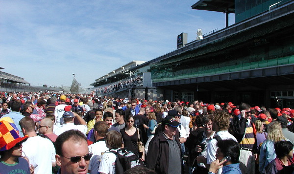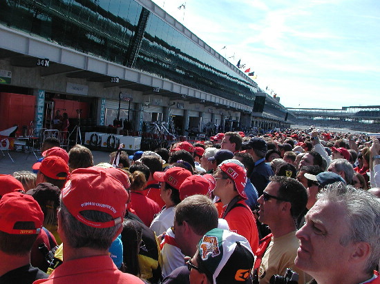 | I expected to see somewhere between 50-400 die-hard F1 fans like me who would take off work just to look in a couple of garages. On the pit ticket, it even said that they would park you close to the pits and to enter the main gate. |