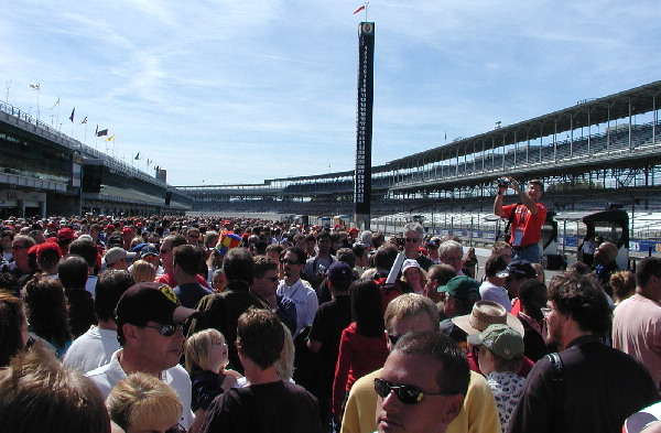 | As I drove in, I noticed that IMS had installed A LOT more p.a. speakers along the viewing hills on the back straight and along the F1 infield. As I hustled the mile up toward the control tower, I was jamming to the music they were playing. As I approached the entrance to the pit lane, I found that they were wanting to see your pit pass. I'd left mine back in the car! Ack! For a second, I was thinking of the 2 miles I was going to have to run, when the guy nodded at me and let me through. Whew! |