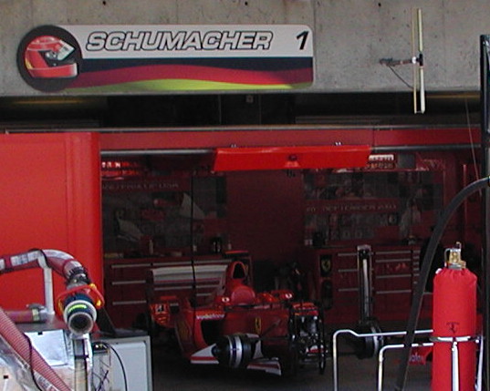 | I did not see any drivers while I was in the pits. Later I saw on the Jumbotron that Michael Schumacher came out in front of people and was interviewed. |