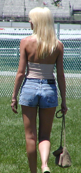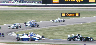 | There was a big crash at the very first turn involving 4 cars. This brought out the seldom-used Safety Car. At this point, we decided to hike to our real seats over in the new Turn 6 stands. These stands provide a decent view of the infield action, however the distance between your knees and the back of the guy infront of you was too close. You can't get to your cooler. It was too tight and I'll never sit there again. |