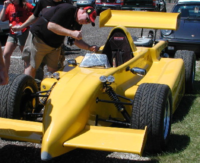 | We stayed and watched the Formula BMW USA series, then we hiked over to the museum where E.T. bought some Indy 500 shirts on sale while the Porsches were out on the track. Then we walked around to the team displays where E.T. was unable to find a B.A.R. shirt that touted HONDA whom he loves. |