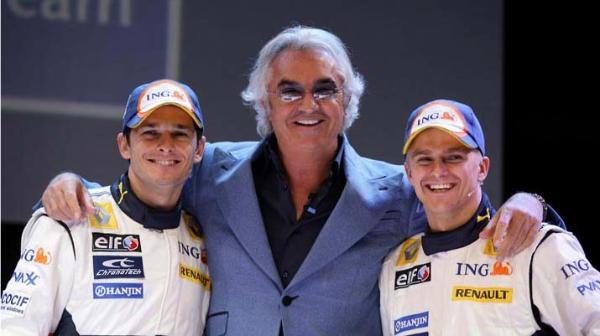 Flavio Briatore with drivers Giancarlo Fisichella and Heikki Kovalainen