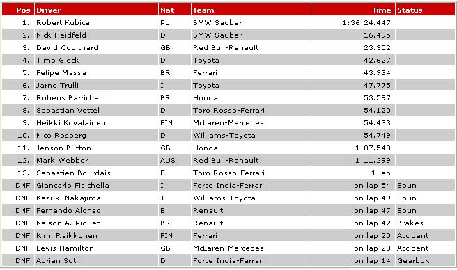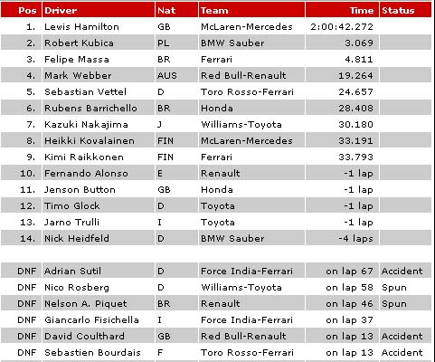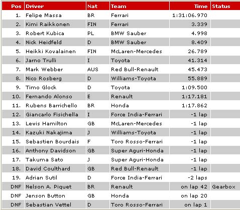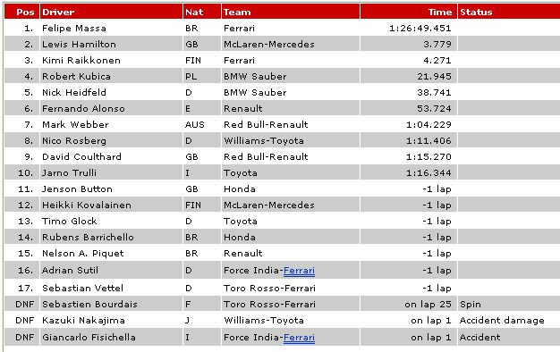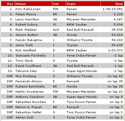 | 2008 F1 RACE RESULTS |