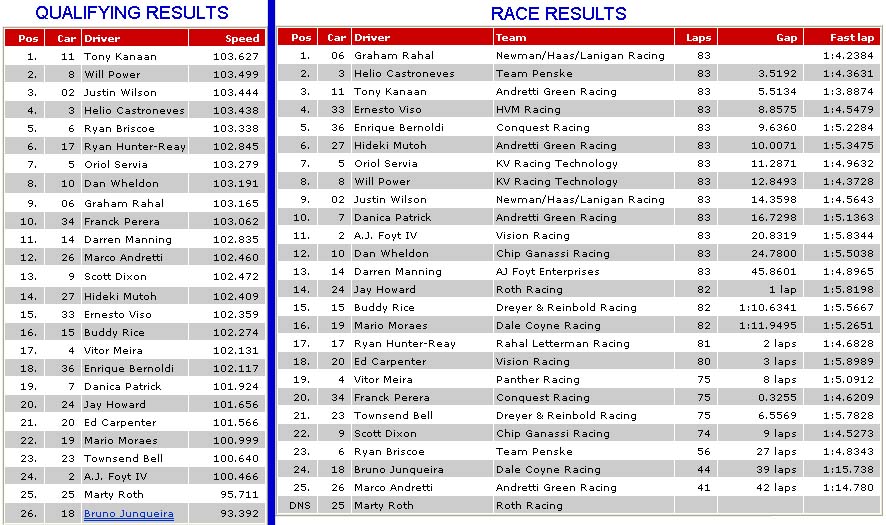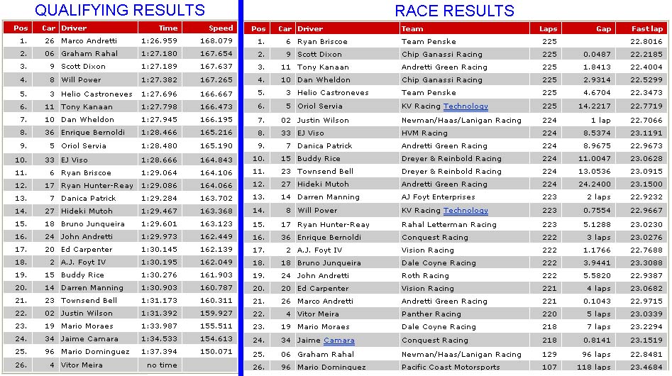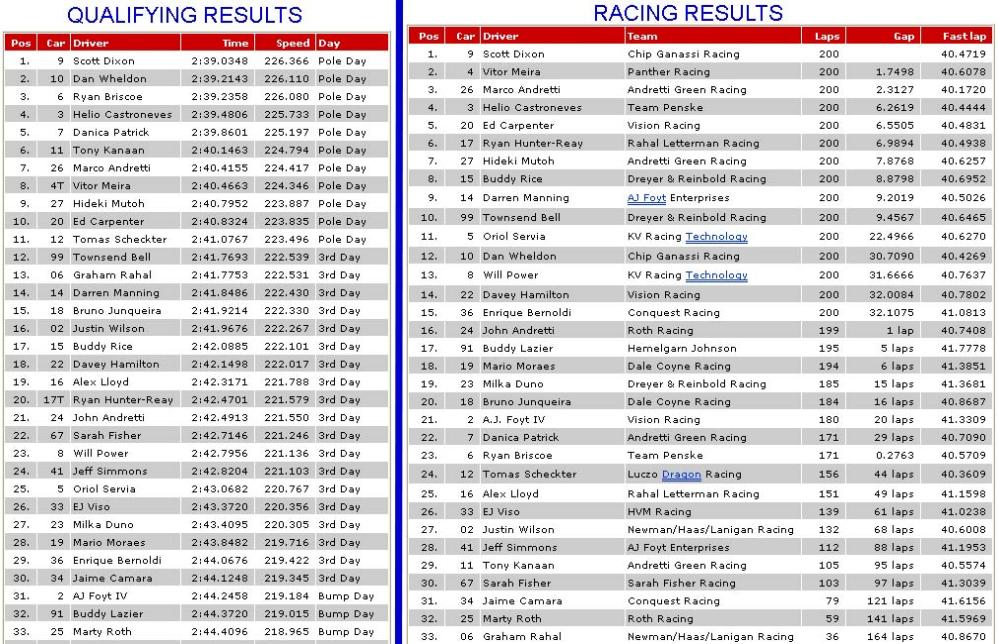 | This page has Qualifying Results & Race Results 2008 Indy Racing League - IndyCar Statistics |