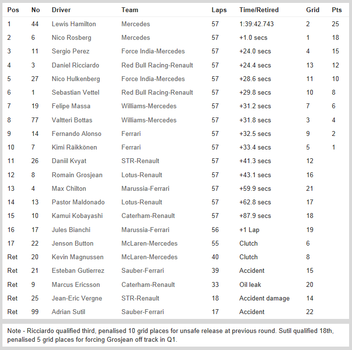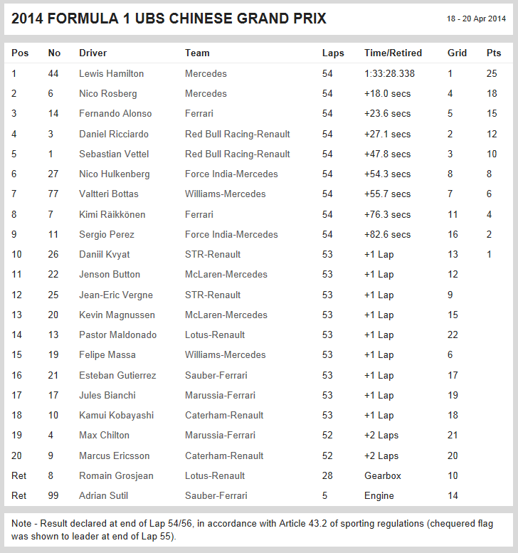 | Chinese GP at Shanghai (Apr 20, 2014) |