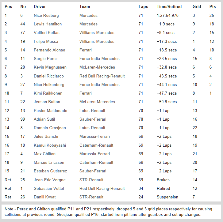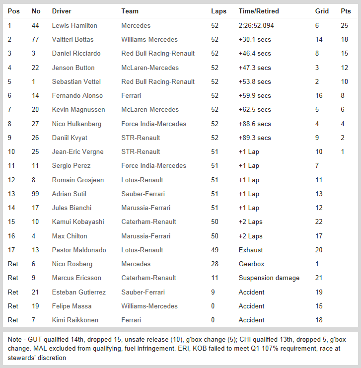 | Malaysian Grand Prix at Sepang (March 30, 2014) |