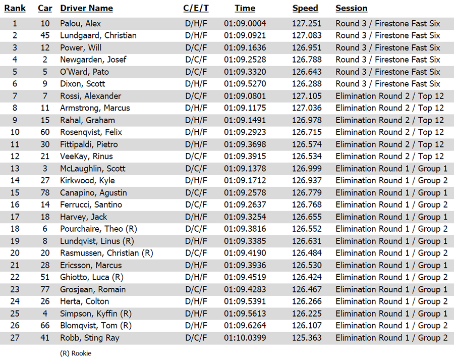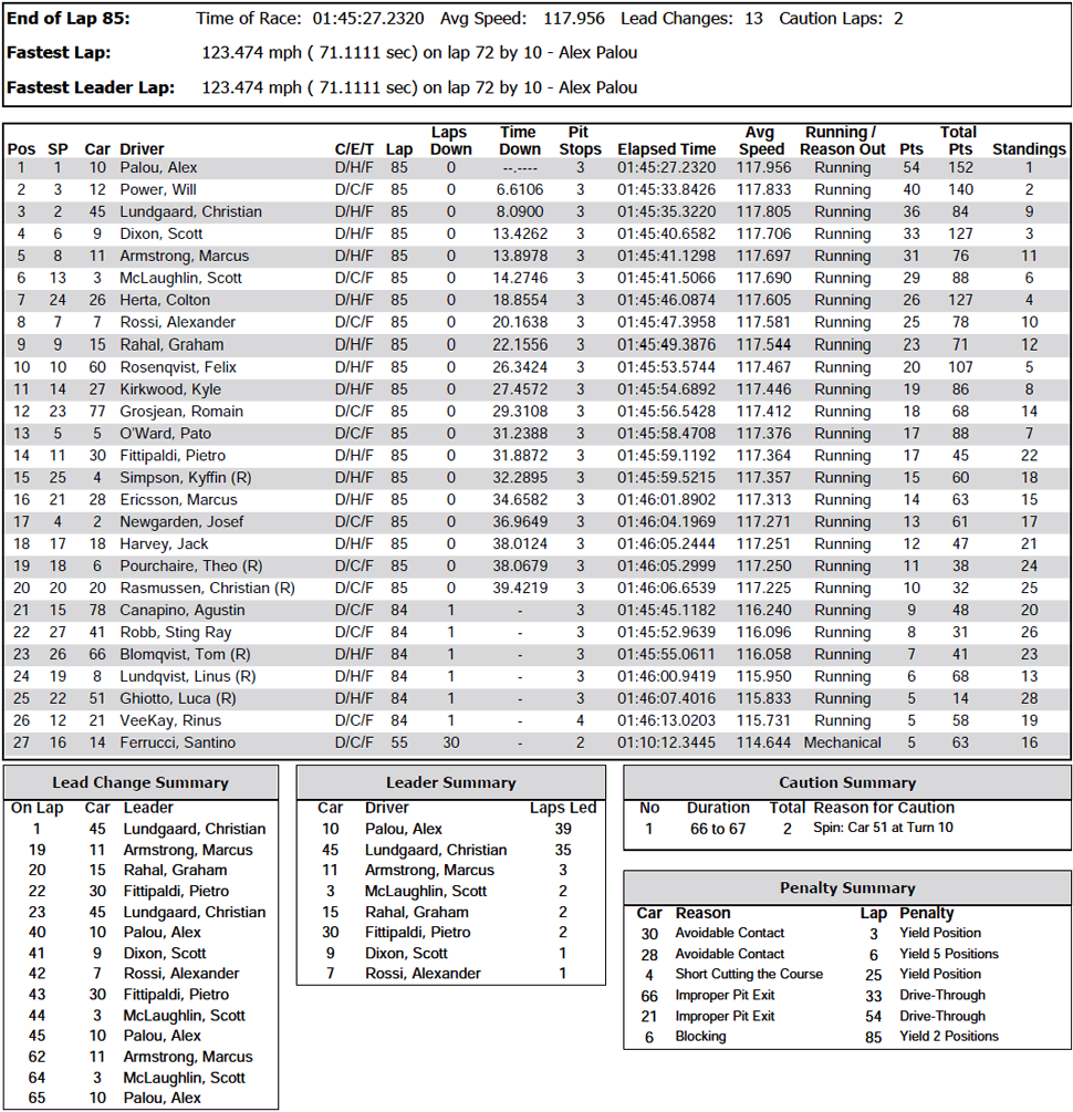 INDY GP RACE RESULTS