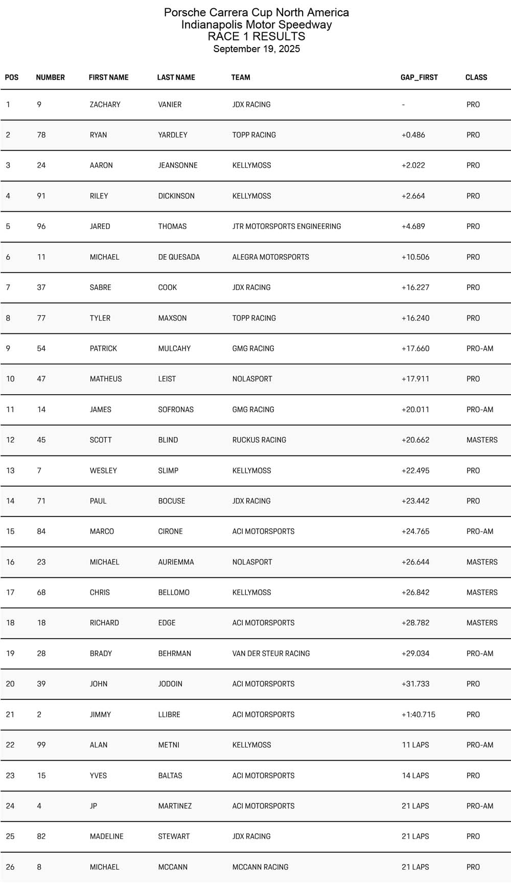 Porsche shared by Adam Adelson, Tom Sargent and Elliott Skeer by 2.276 seconds.