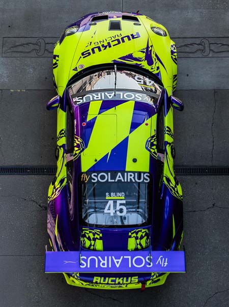 on the grid to victory lane. earning its first IMSA class victory despite losing its hood late
