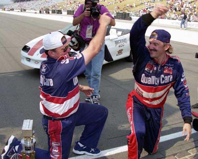 After winning the 1996 Brickyard 400, Dale Jarrett and