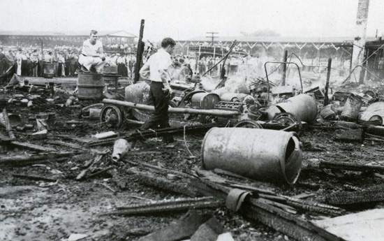 1941 Indy 500 - On the morning of the race a fire broke out in the garage area. George Barringer's revolutionary rear-engined car was destroyed.
