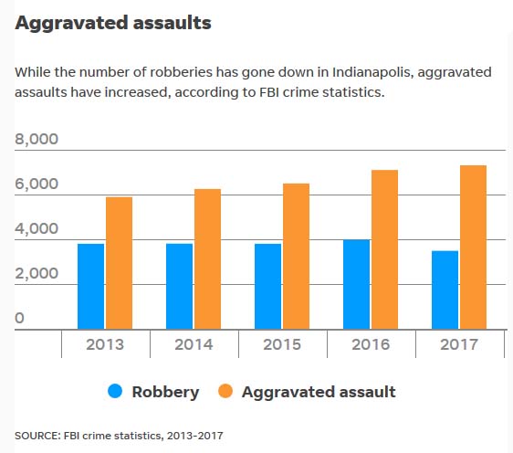 I saw a report from 2015 where Indy police reported 6,497 aggravated assaults that year.