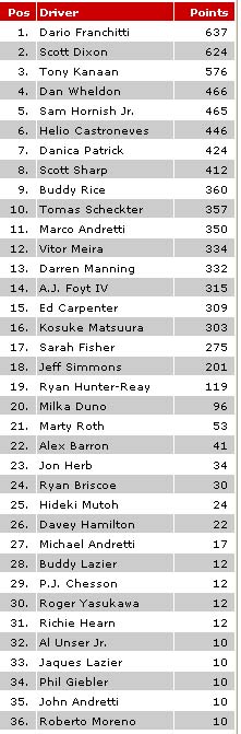 2007 Indy Racing League - Indycar ROOKIE Point Standings