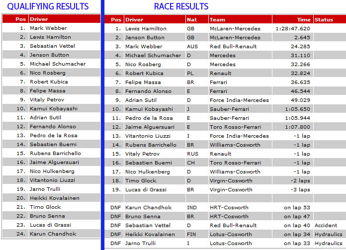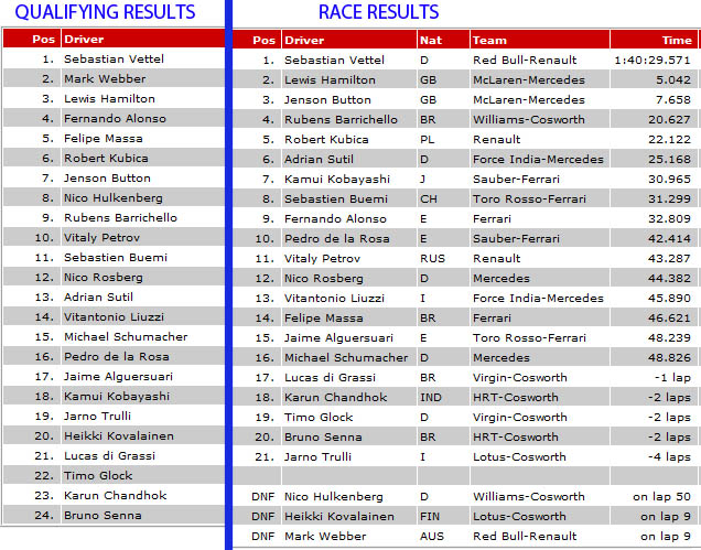 | Malaysian Grand Prix at Sepang (April 4, 2010) |