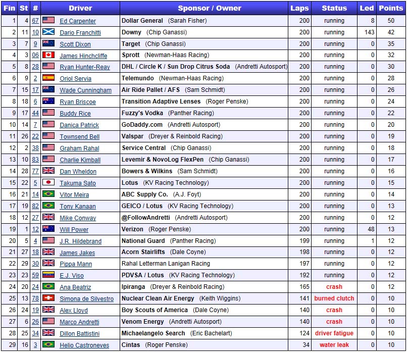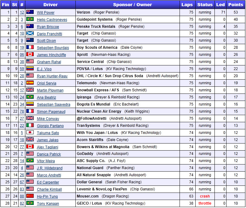 This page has Qualifying Results & Race Results 2011 IndyCar Statistics 2nd Half of Season