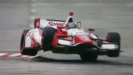 Ed Carpenter and Justin Wilson going airborne during Qualifying which resulted in wall smacking.
