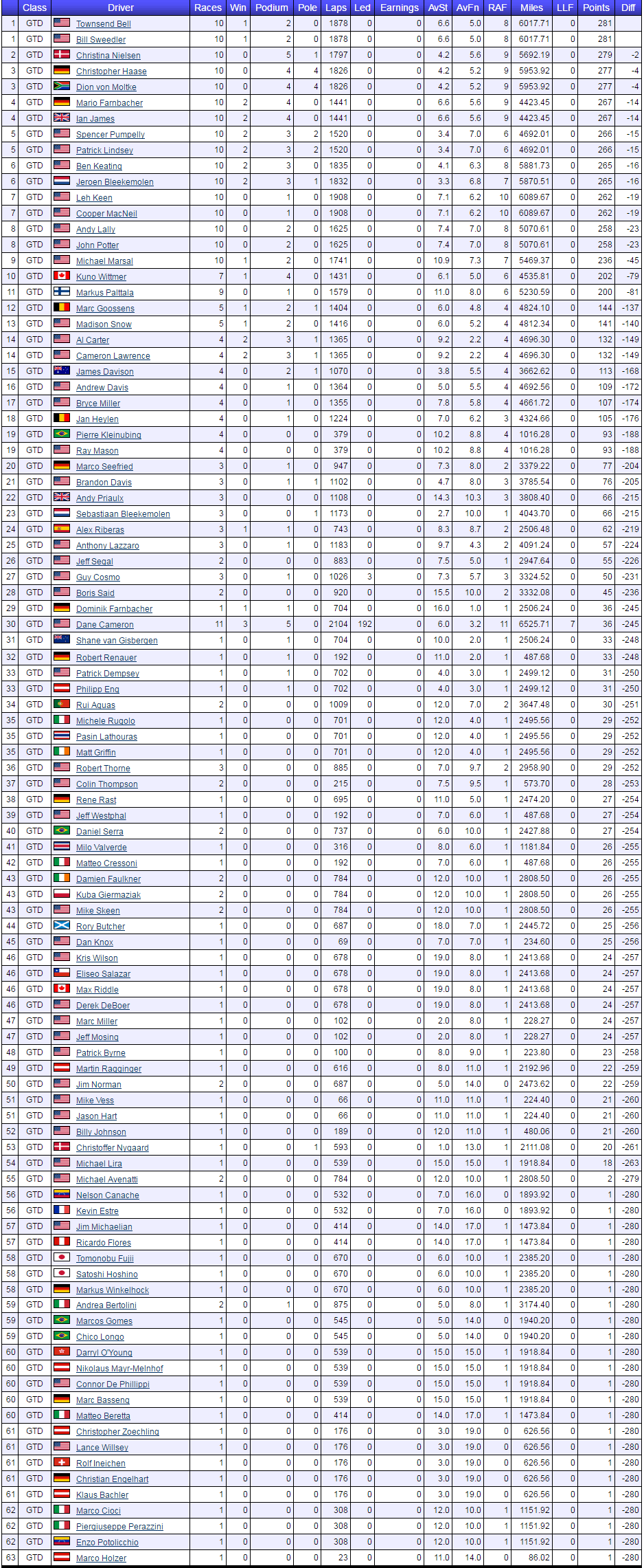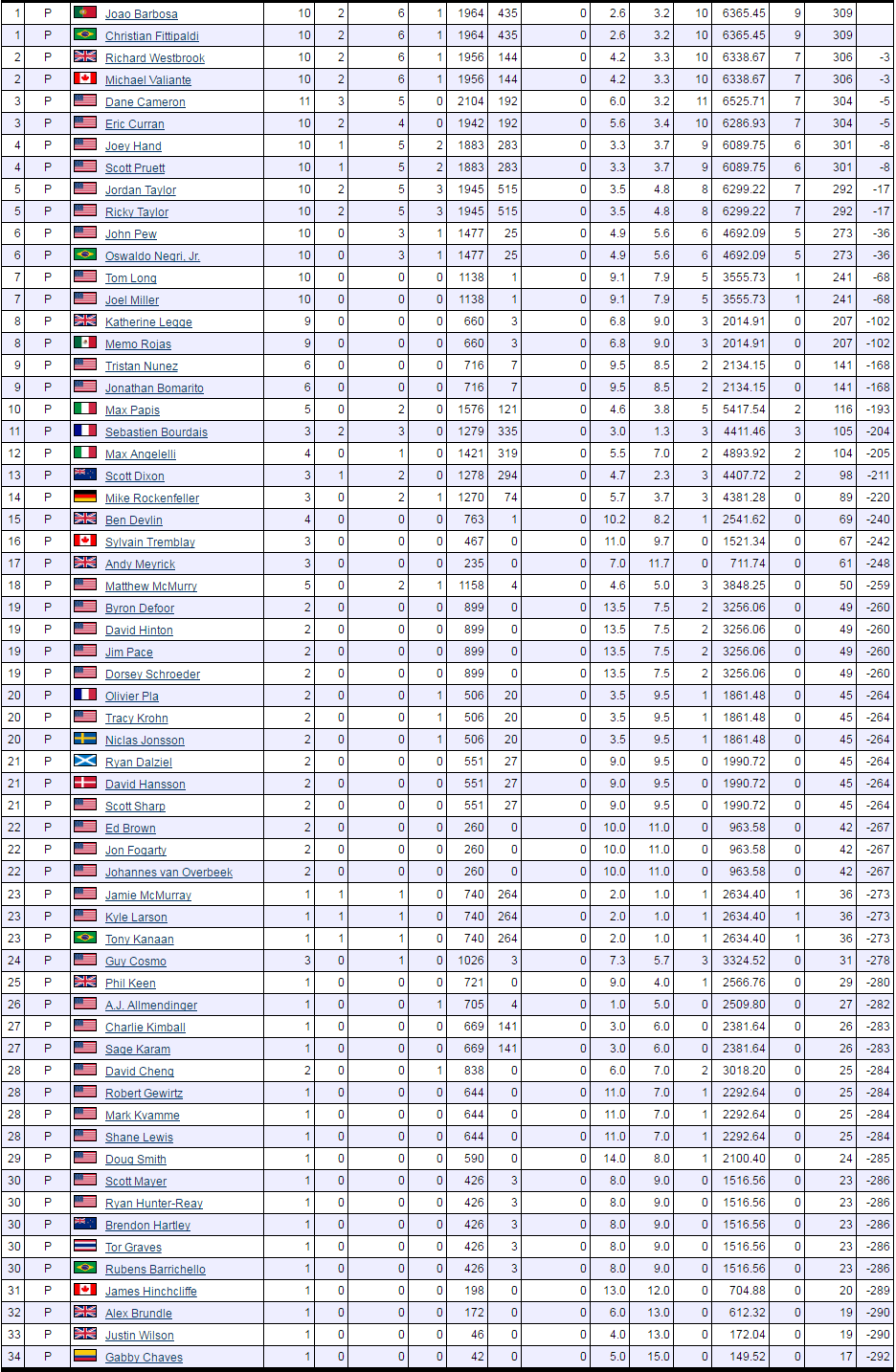 2015 Final Point Standings