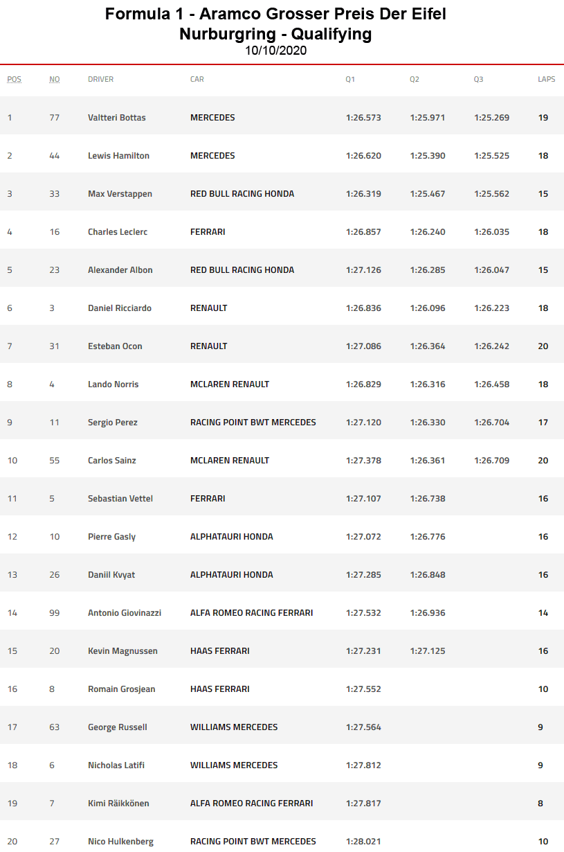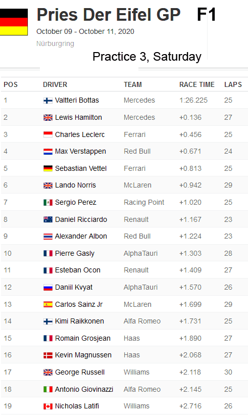 Eifel Grand Prix at Germany's Nurburgring (Oct 11, 2020)