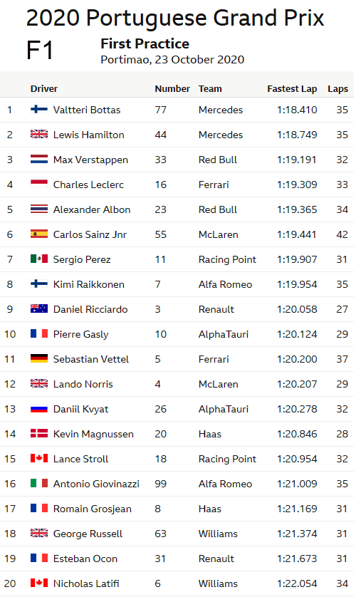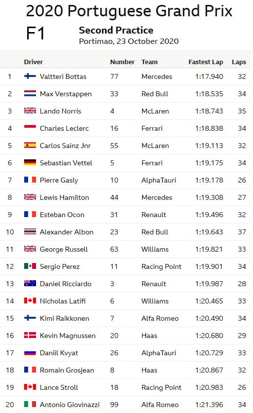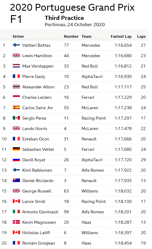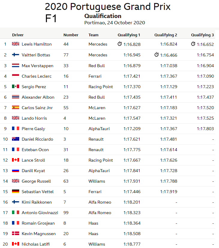 Portuguese Grand Prix at Algarve in Portimao (Oct 25, 2020)