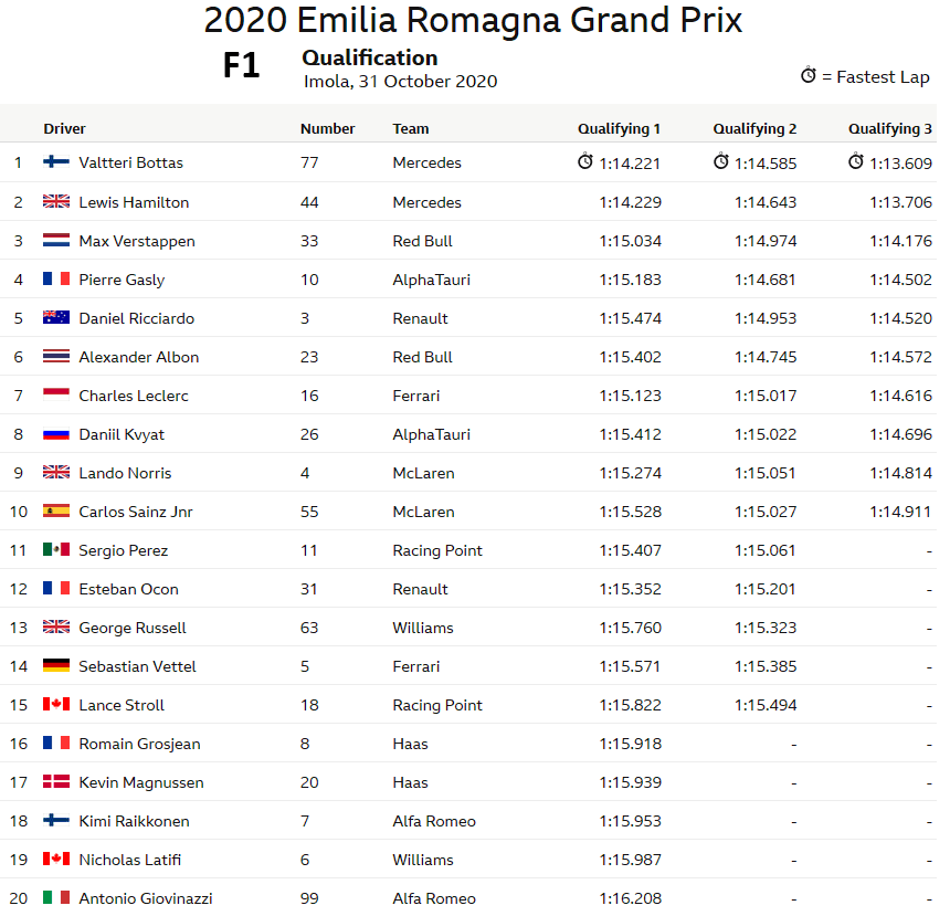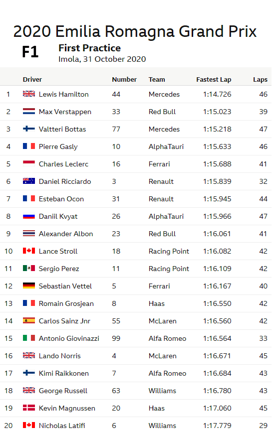 Emilia Romagna Grand Prix at Imola (Nov 1, 2020)