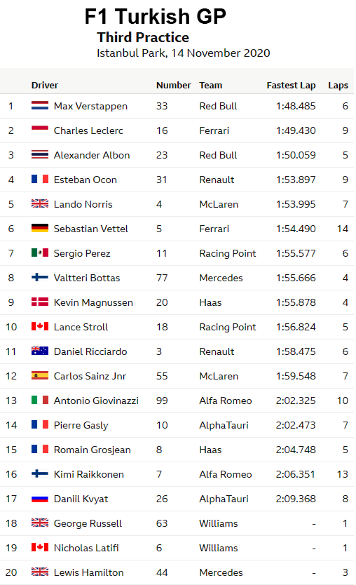 Turkish Grand Prix at Intercity Park Istanbul (Nov 15, 2020)