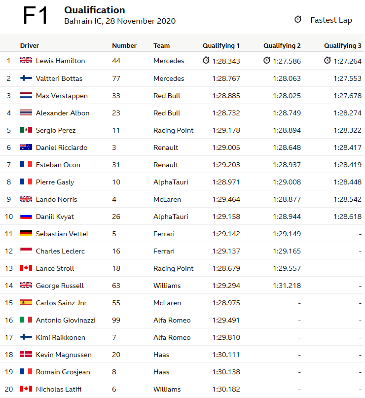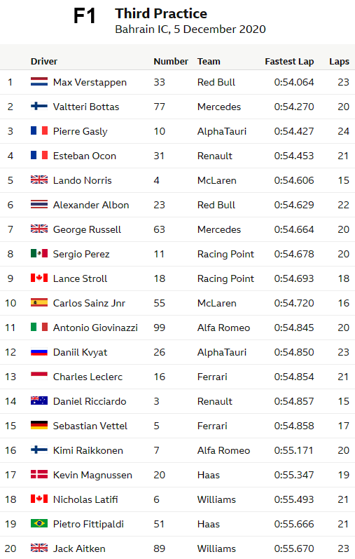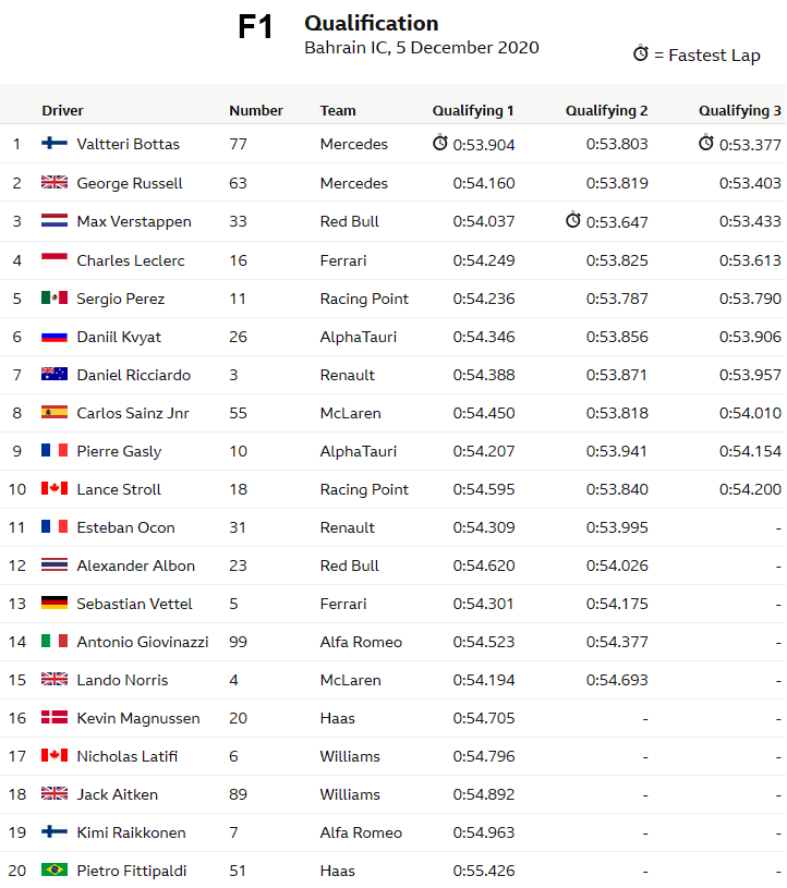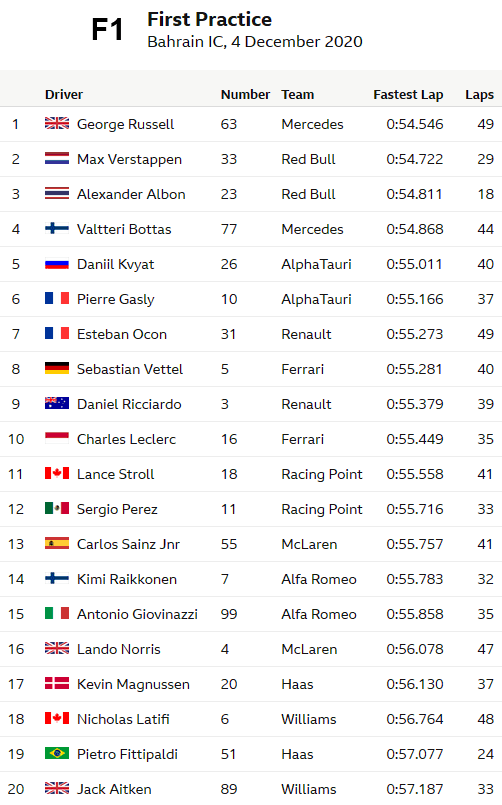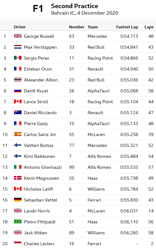 Bahrain Rolex Sakhir Grand Prix (Dec 6, 2020)