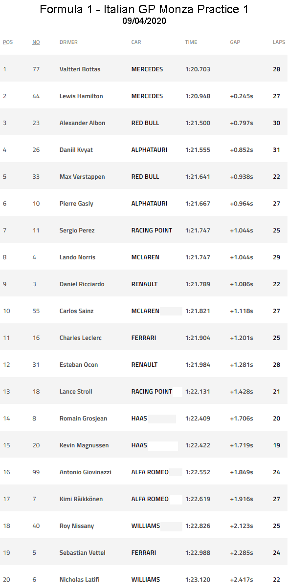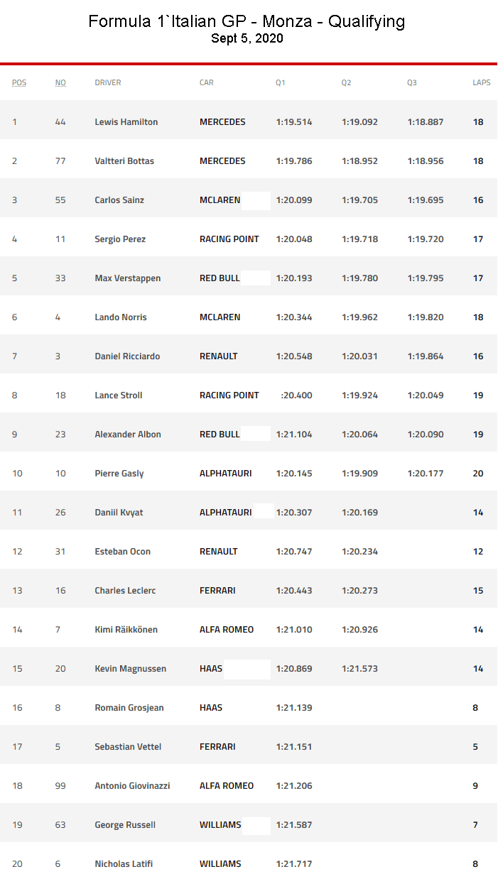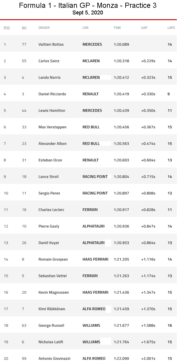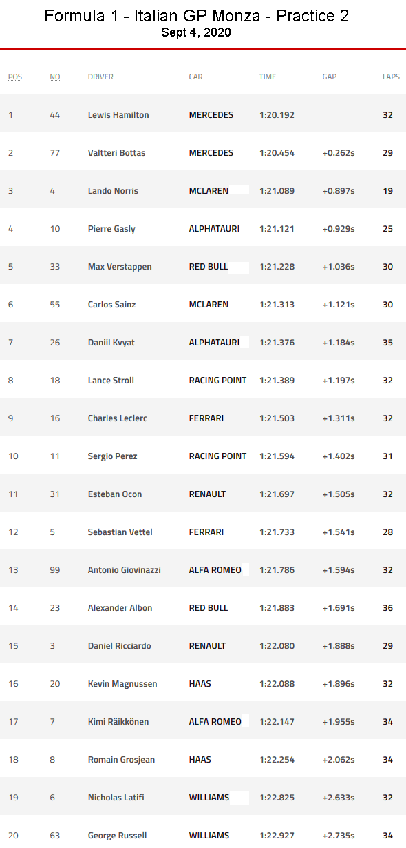 Italian Grand Prix at Monza (Sept 6, 2020)