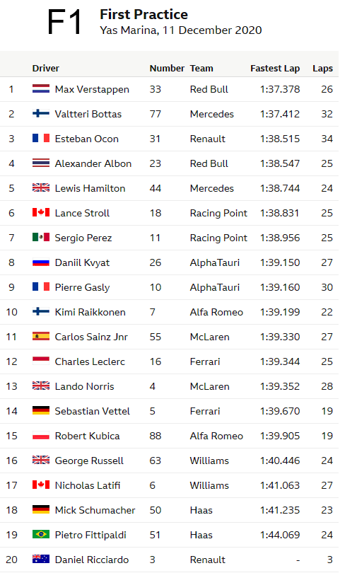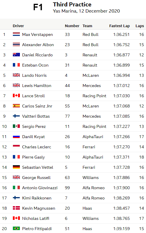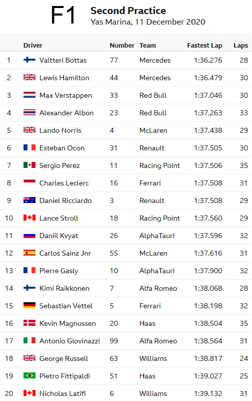 Abu Dhabi Etihad Airways Grand Prix (Dec 13, 2020)