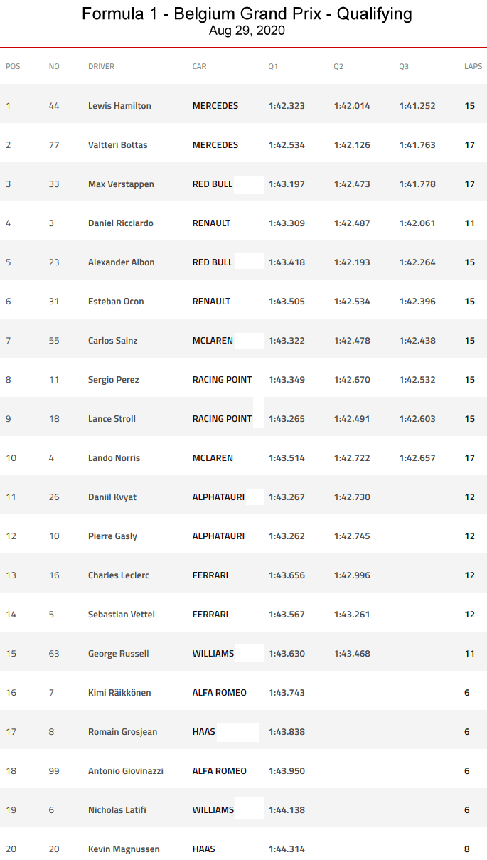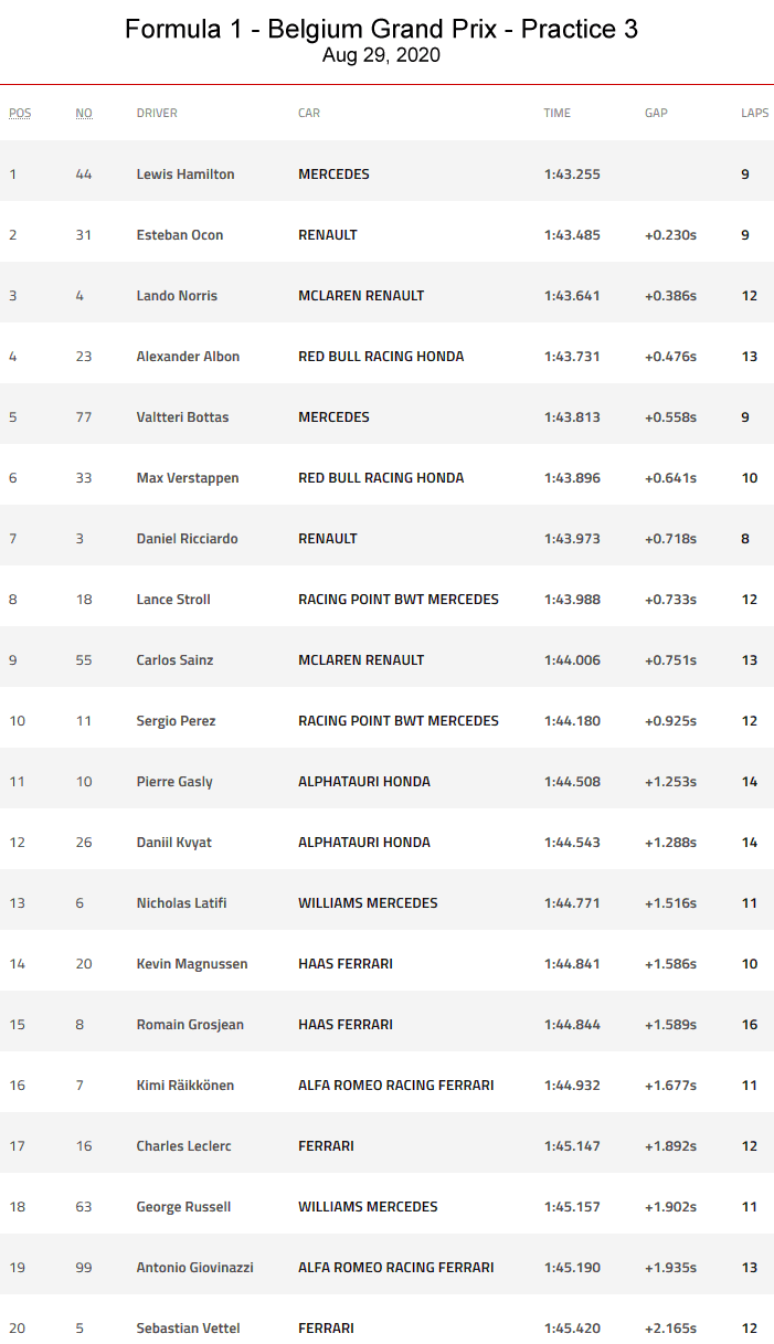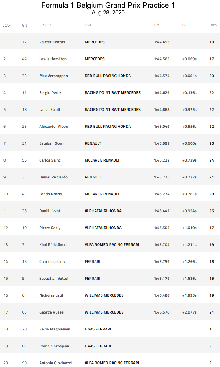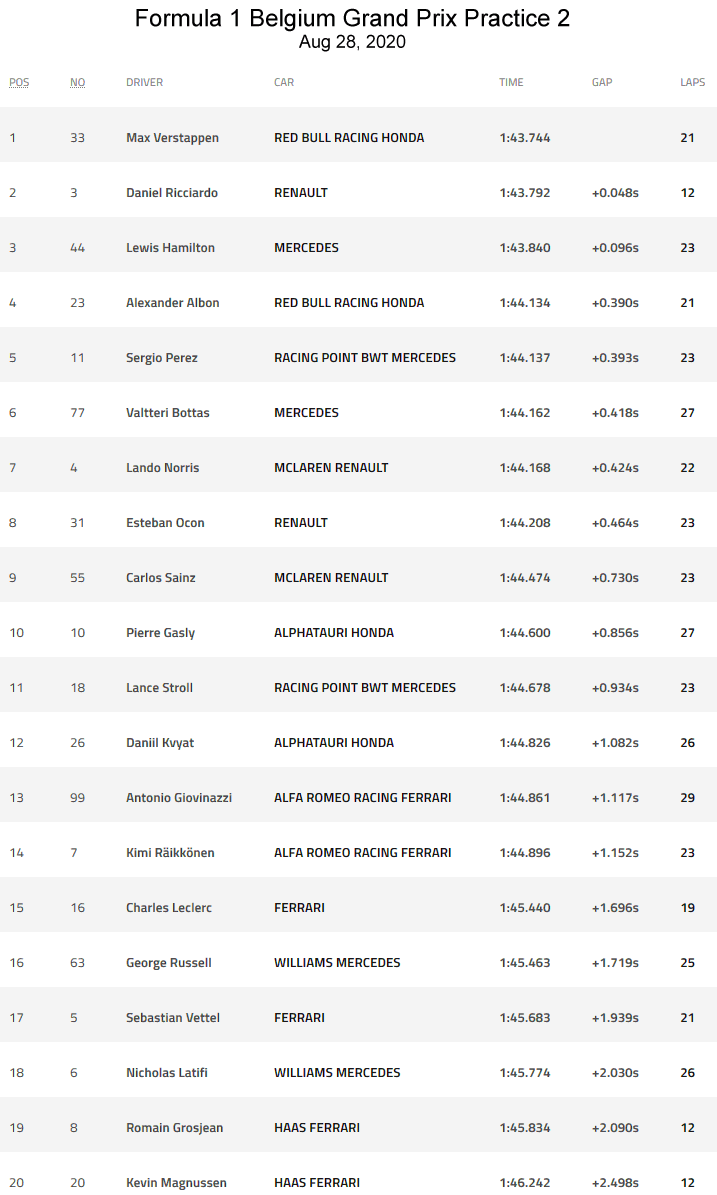 Belgian Grand Prix at Spa-Francorchamps (Aug 30, 2020)