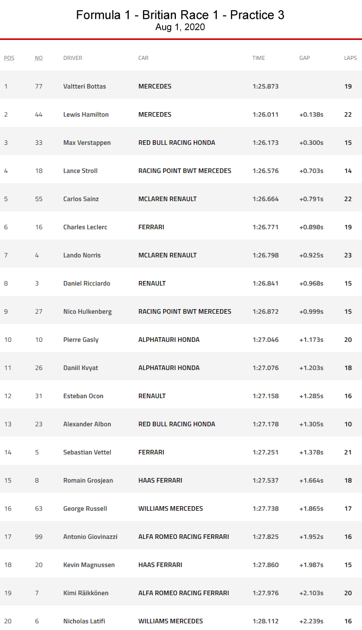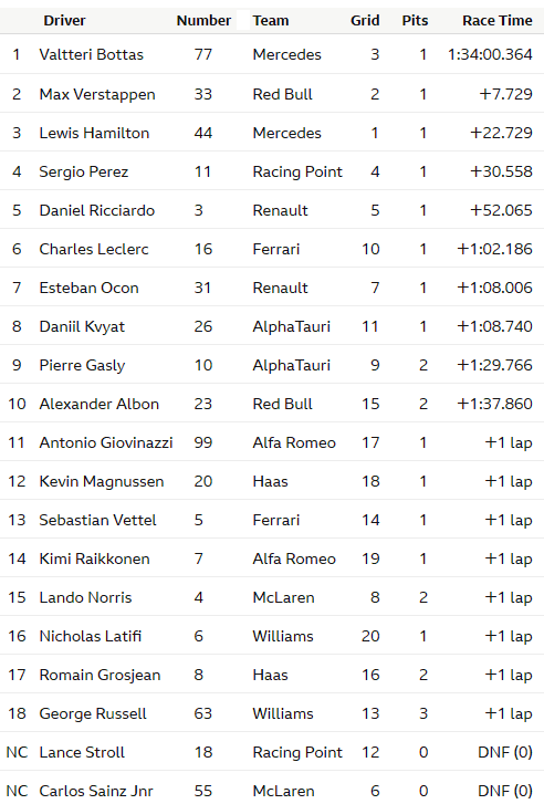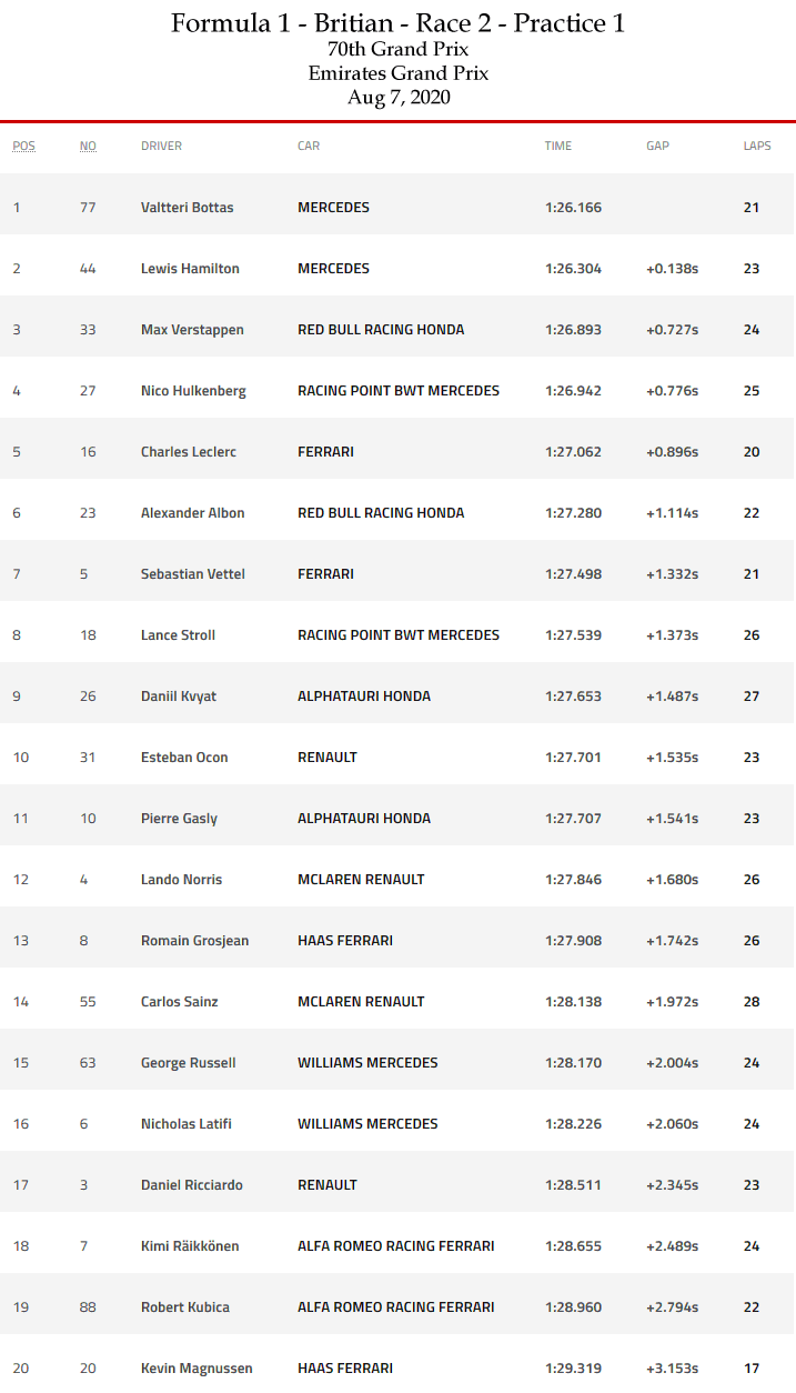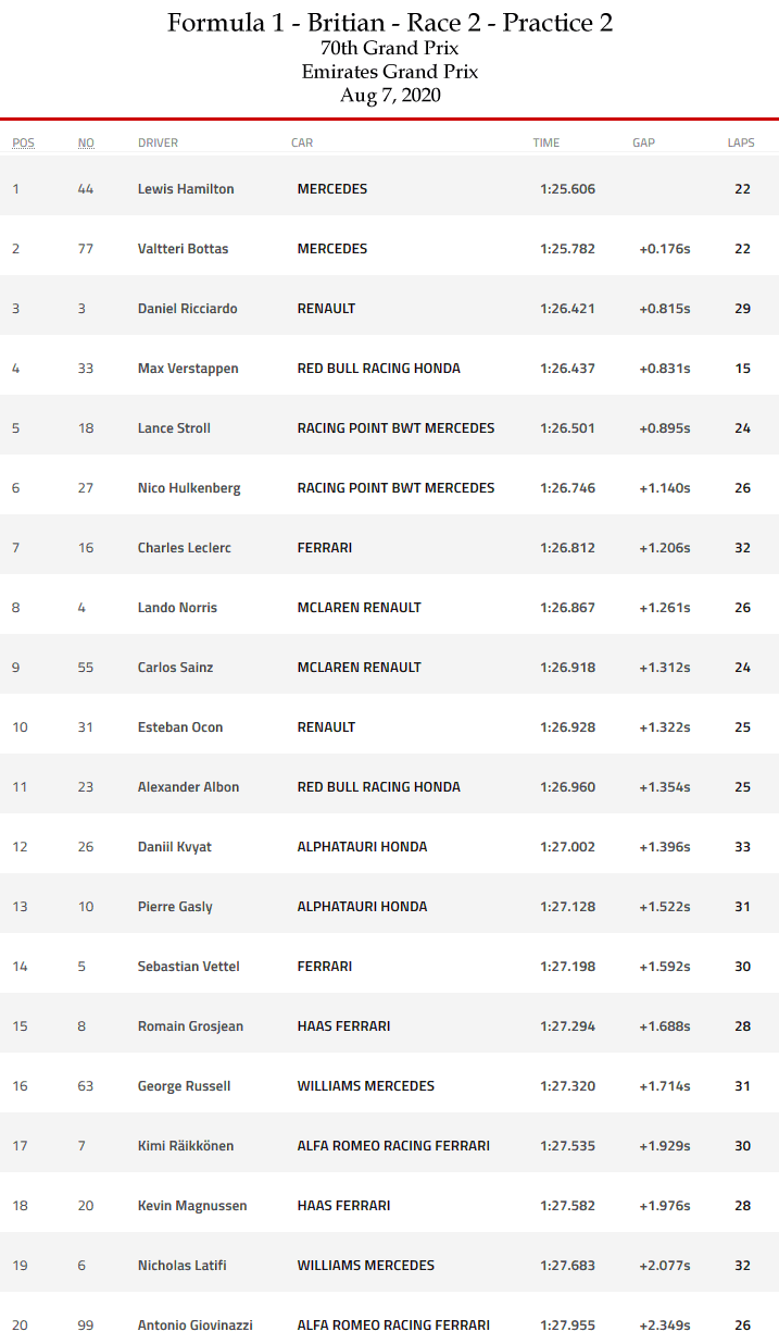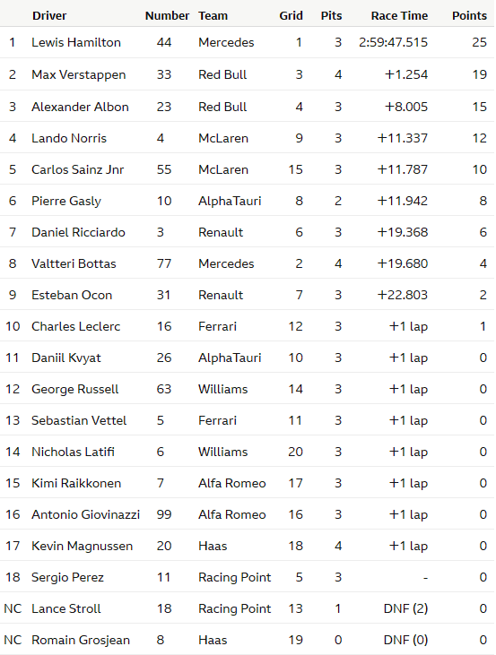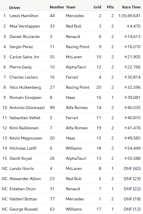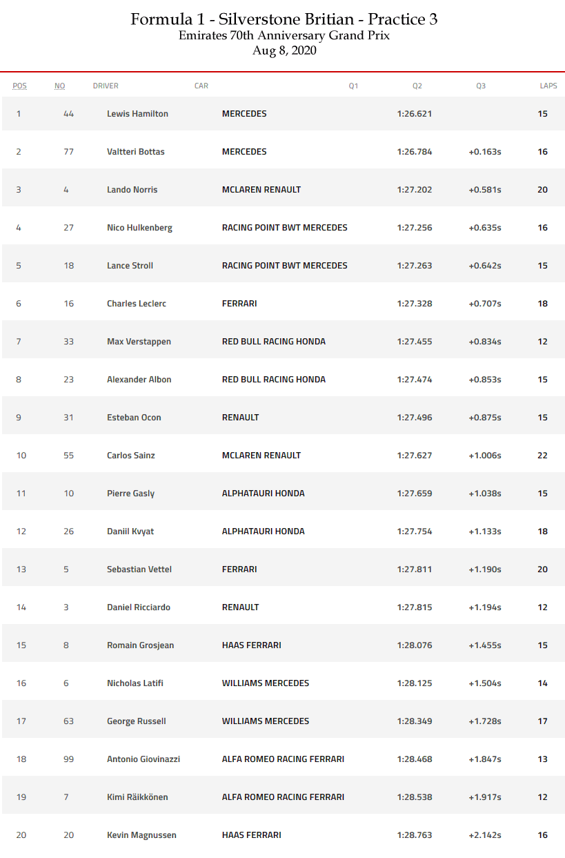 British Grand Prix at Silverstone Circuit - Race 1 - (Aug 2, 2020)