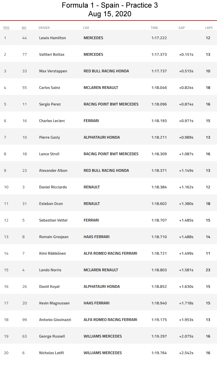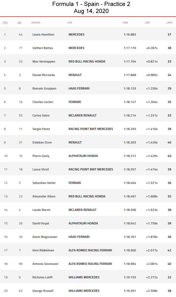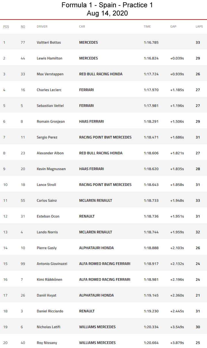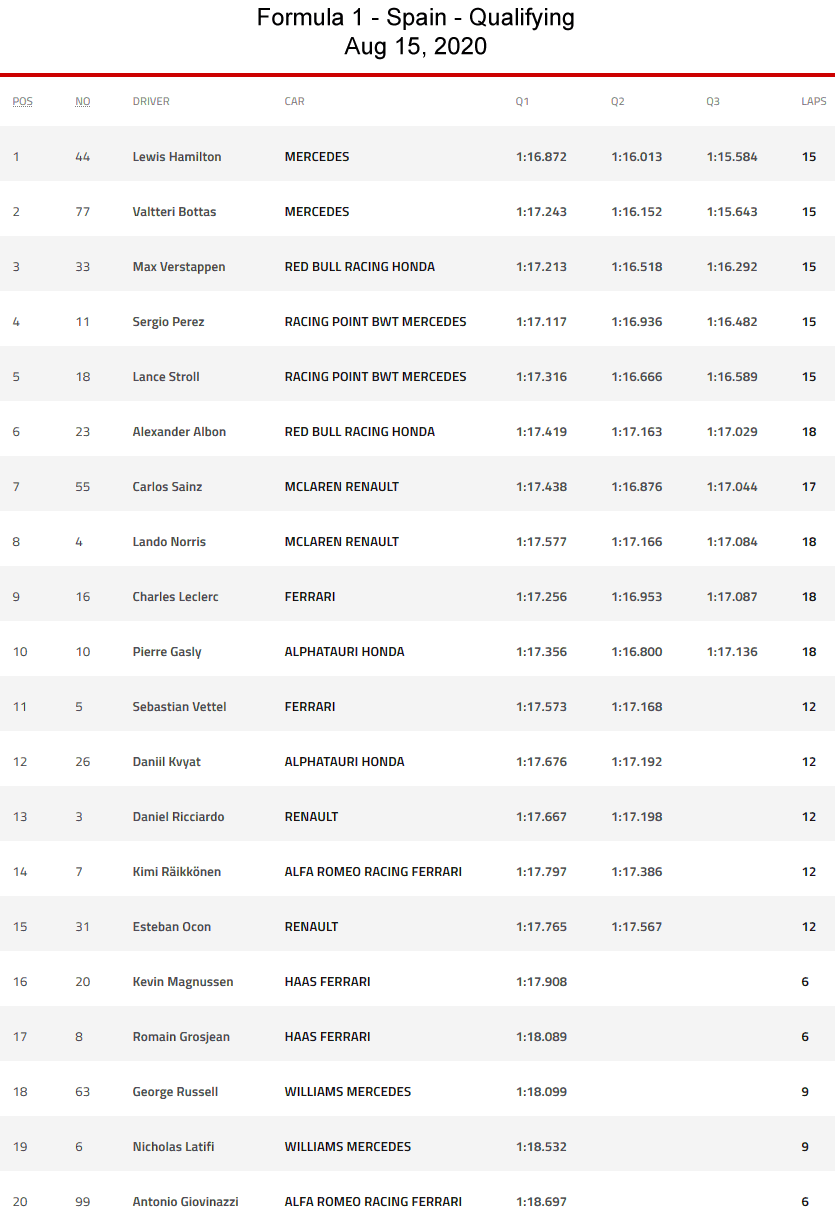 Spanish Grand Prix at Circuit de Barcelona-Catalunya (Aug 16, 2020)
