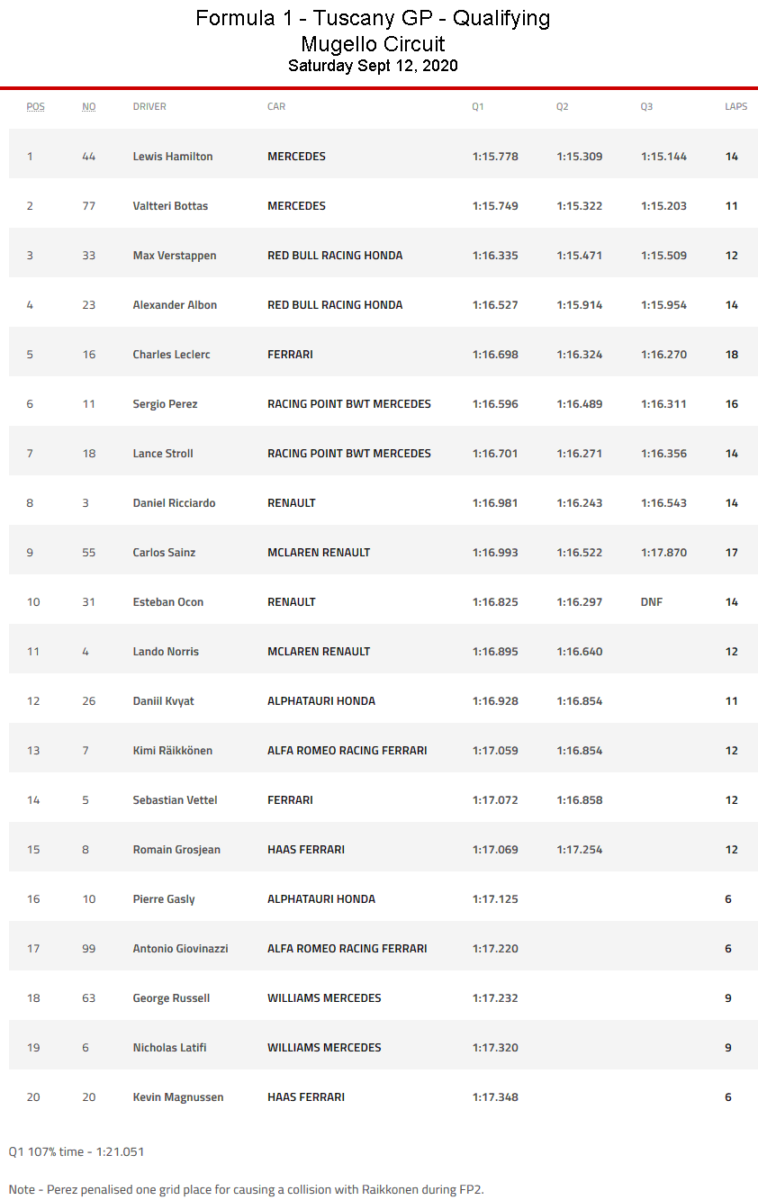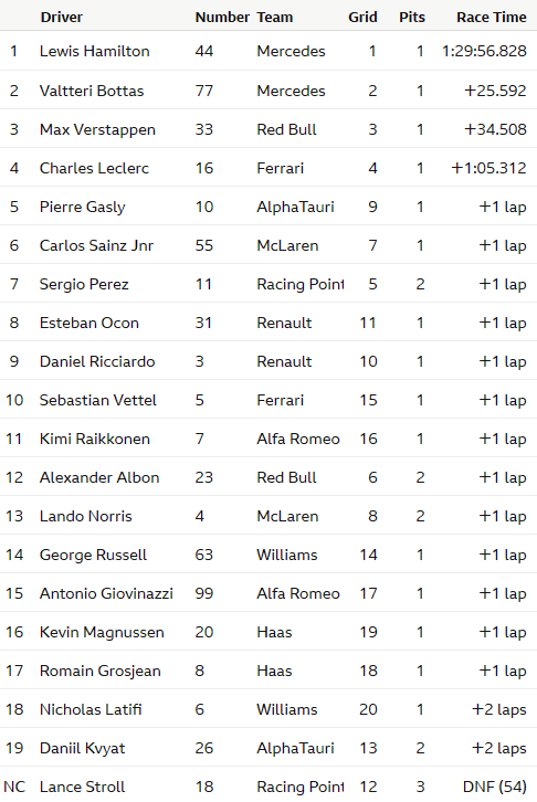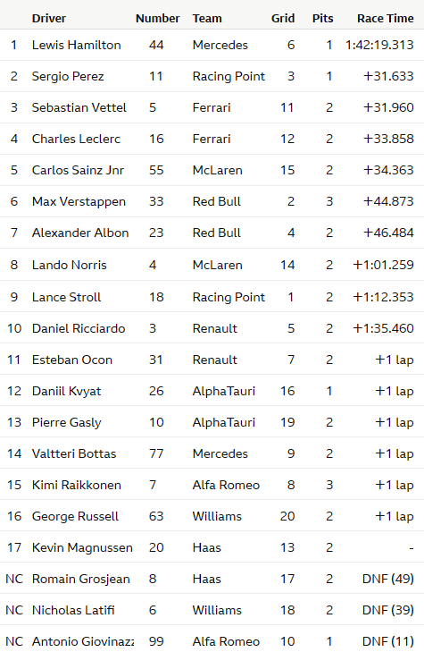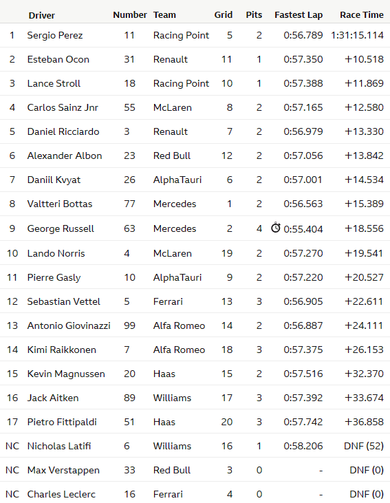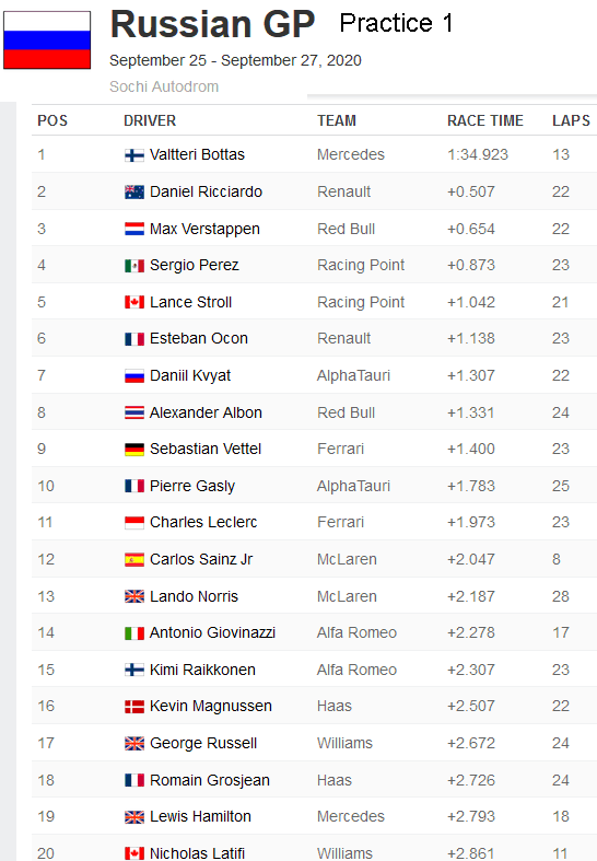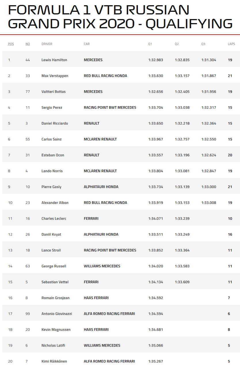 Russian Grand Prix in Sochi (Sept 27, 2020)