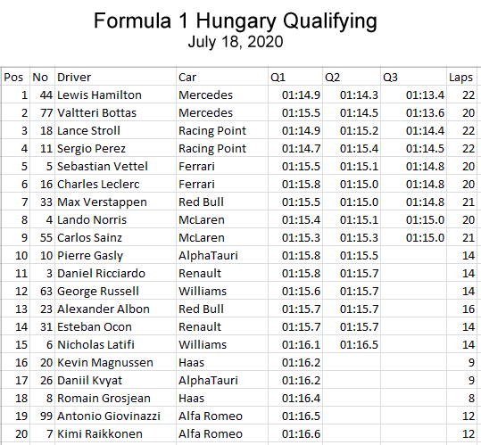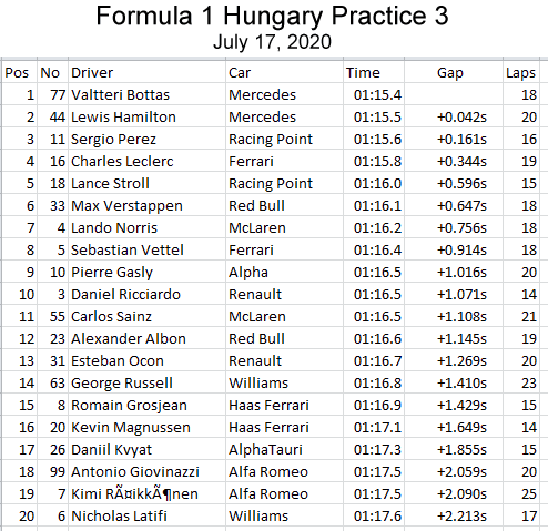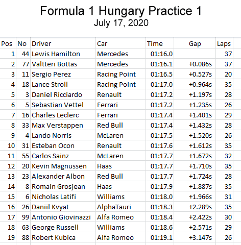Hungarian Grand Prix at Hungaroring in Budapest (July 19, 2020)