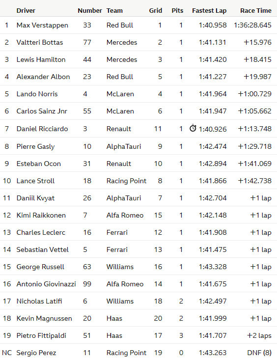 2020 World Drivers Champion: Lewis Hamilton (his 7th)