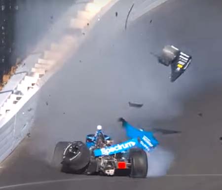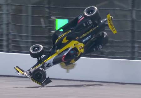 Spun in T4, hit wall, went airborne. He's ok.