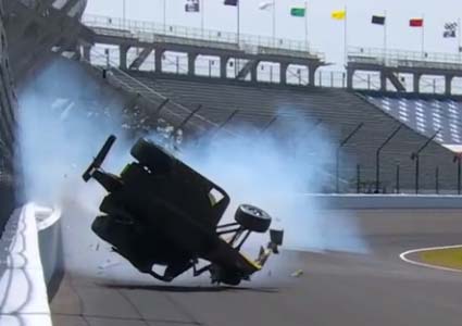 Hit T1 wall, landed upside down. He's ok