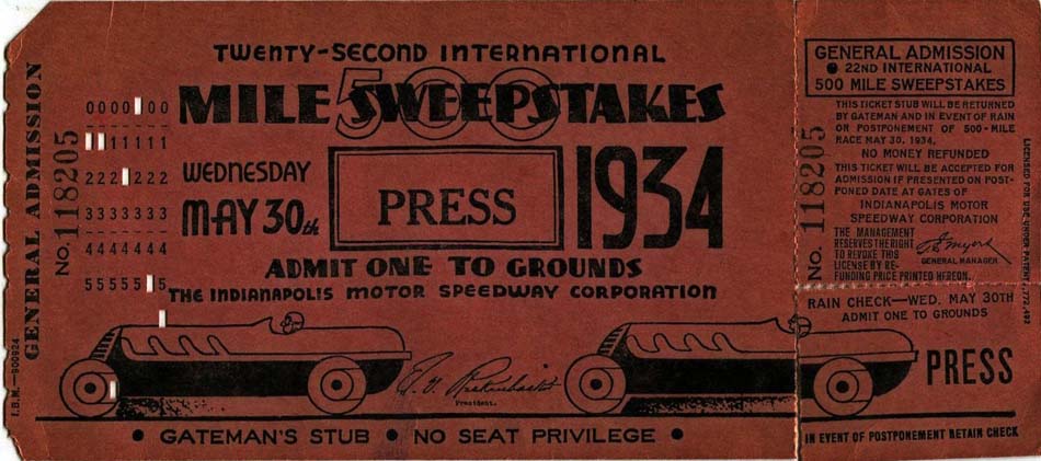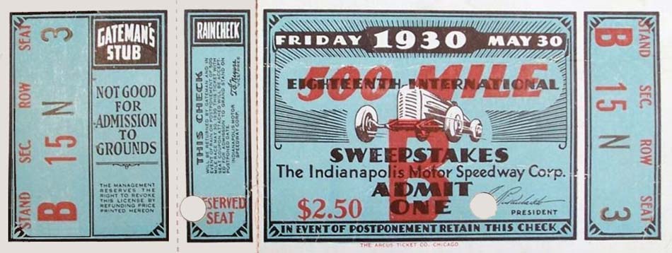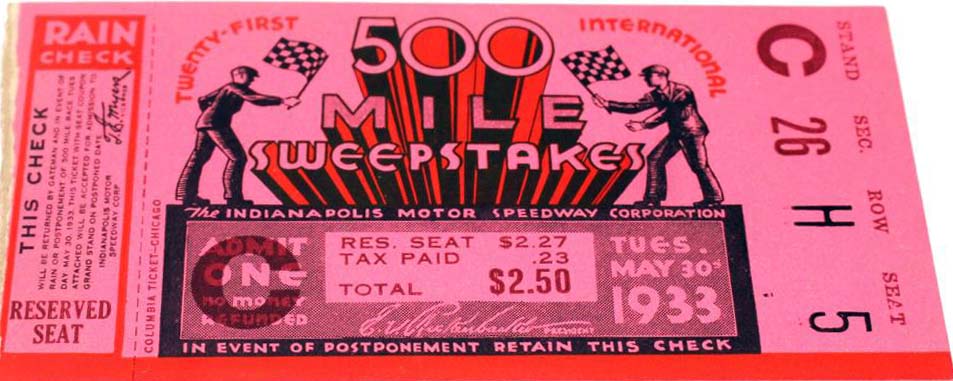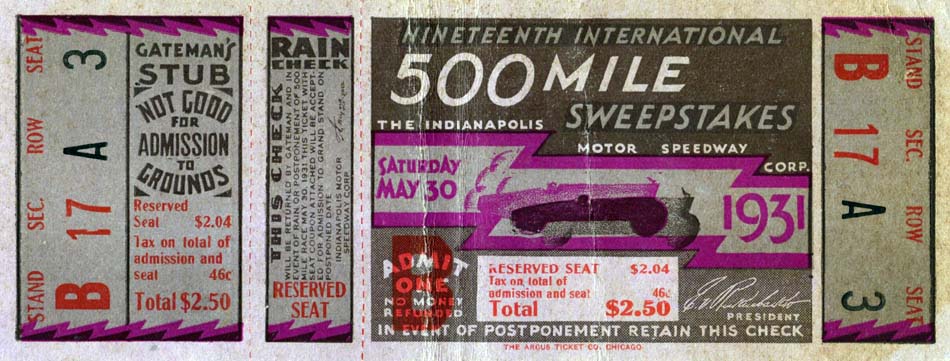 | PHOTOS OF INDY 500 TICKETS |