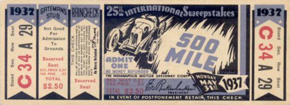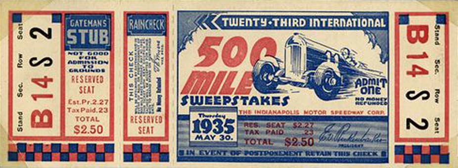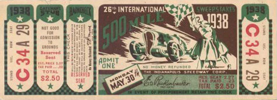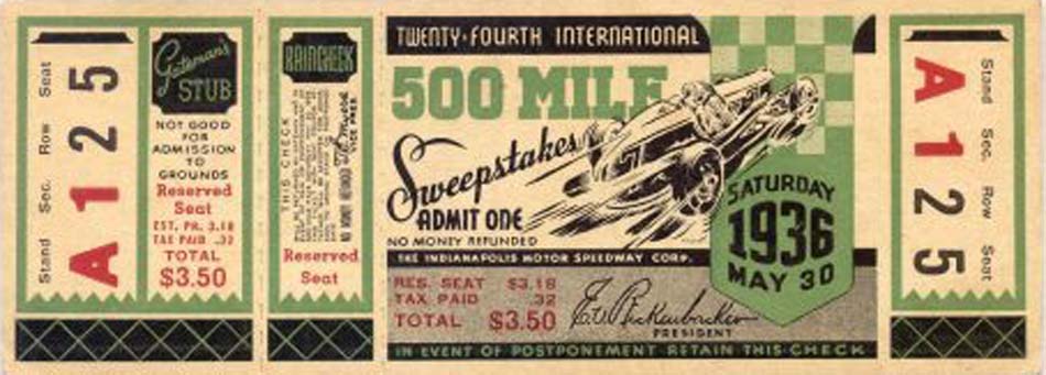 | Photos of Indianapolis 500 Race Tickets 1930 - 1939 |