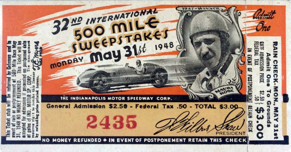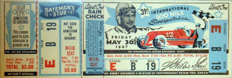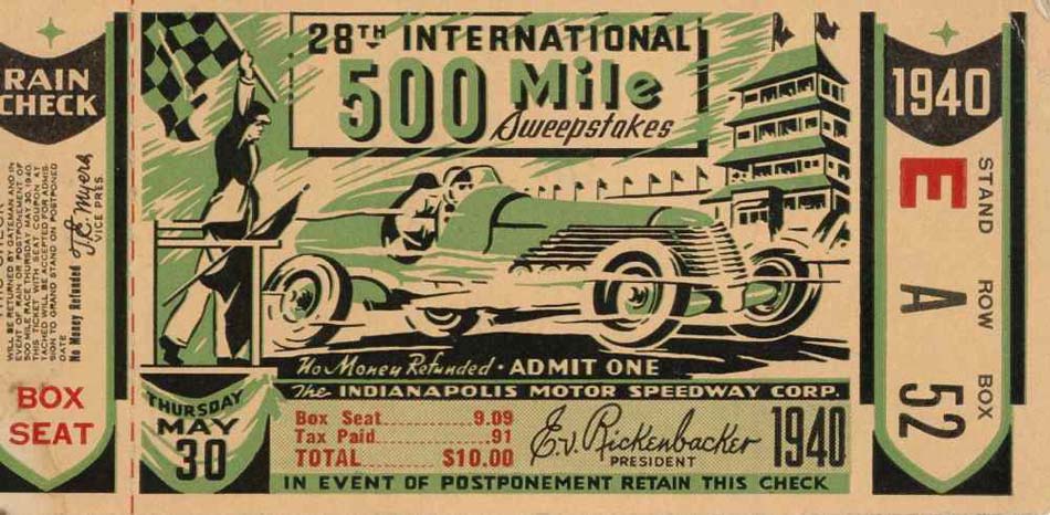| Photos of Indianapolis 500 Race Tickets 1940 - 1949 |