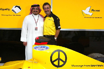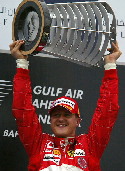 Kimi dnf'd again(!) with another blown Mercedes engine. BAR Honda continues to show well with both drivers in the points and Jenson Button on the podium, in third behind the two Ferraris (again). Ralf got punted aside when he tried to close the door on Takuma Sato. In answer to my query on the grid girls in Bahrain, they DID appear, but instead of appearing as models or cheerleaders, they were decked out like wacs!