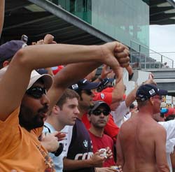 Leading carmakers, such as BMW, Mercedes, and Toyota, who try to sell cars in the United States through the halo effect of competing in Formula One, will find the travesty that they took part in on Sunday will tarnish their images in the world’s biggest marketplace for years to come. This is how some of the bill could break down: $16 million — For the 120,000 spectators who want their money back. If refunds get offered. $25 million — The sum that the Speedway is believed to have paid for the annual franchise. Such is the shock at what happened, the management seems unlikely to renew its contract with Bernie Ecclestone’s Formula One Management company for a race in 2006. $10 million — The amount the Speedway is estimated to spend on transporting an average of 50 staff and tons of equipment to North America, shared with Canada. $220 million — The loss of revenue for the city of Indianapolis if future races are cancelled. Thousands of tourists who spend on hotel bills and fill restaurants for almost a week give the city its biggest income from a single event. Incalculable — The huge knock-on from disgruntled sponsors who will probably want compensation for not seeing their cars on the track. BAR Honda were faced with paying back about $11 million to sponsors when they were banned from the Monaco Grand Prix this year and the consequences of the US race could be as great for the leading teams among the seven who refused to take part on Sunday. It is not known what the total will be, but the blue-chip companies represented included the Royal Bank of Scotland, which sponsors BMW-Williams, and British American Tobacco, backer of BAR Honda. Between them, sponsors invited thousands of corporate guests, many of whom were given a police escort to the Speedway on Sunday morning. After witnessing a single lap, they were left to find their own way home as the motorcycle police were diverted to help to marshall angry crowds demanding their money back.