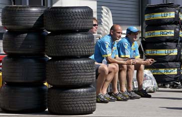 None of Jordon Grand Prix Tteam's drivers have ever raced on the Indianapolis roadcourse. Narain Karthikeyan, Tiago Monteiro and test driver Robert Doornbos. The BMW WilliamsF1 Team has new engines for Indy. Indy is normally a two-stop race, but that may change if their new Michelin tires work well. The BMW Motorsports director said, "The U.S. is the biggest export market for BMW. In terms of sales volume, it currently lies in second place behind the German home market. There is a keen interest in the sporty M models here, nowhere else sells as many of the BMW M cars as in the United States." The engine technical director for Toyota says, "The Indianapolis Motor Speedway is one of the toughest circuits on the calendar for the engine department... the 1km banked straight which links the final corner of the preceding lap and the first corner of the next means that we are running the engine at max power for almost 24 seconds without a break." Expect to find driver Jarno Trulli, who is in third place in the standings, to be hanging out at the Slippery Noodle Inn listening to blues in the evenings. In regard to the U.S. Grand Prix at Indianapolis, points leader Fernando Alonso said, "Without a doubt, it would be one of the best possible races to win a Grand Prix. In terms of the circuit itself, it is a bit complex and there are some very contrasting sections: very high speed straights, and very, very slow corners. You have to be really careful when you are selecting the set-up." The Renault F1 Team has released their test driver to compete in the 24 Hours of LeMans and will be substituting Heikki Kovalainen at Indy. At BAR Honda, driver Takuma Sato said, "I have great memories from Indianapolis in 2004 as I got my first podium at the race last year. I am very much looking forward to getting back to Indy next weekend and I think we will be competitive." Briton Jenson Button said, "The Brickyard is a very slow circuit. I prefer fast flowing circuits...the crowd are always very supportive." 2003 Indy 500 winner Gil de Ferran is now the sporting director at BAR. Willy Rampf, technical director for Team Sauber Petronas, relates, "The surface is quite abrasive... that can affect tire wear. The infield is very tight - the drivers get into first gear there three times a lap." Jacques Villeneuve, 1995 Indy 500 Winner, enjoys returning to Indy, "Because the atmosphere outside of the paddock is always great. It feels a bit like a home Grand Prix because the number of Canadian fans that come and the many supporters that I still have around the USA after my time in IndyCar there and winning the Indy 500. Obviously, the track brings some good memories, so I am always happy to race there." Felipe Massa didn't get past the first turn last year in his first visit to the Indy Speedway. He said, "I like Indianapolis. You are conscious of being somewhere special, with a big history, racing in front of knowledgeable fans who really love their motor racing." Red Bull Racing has been searching for an American driver for several years. American Scott Speed was their test driver last week in Canada where he drove faster than either regular drivers (Coulthard and Klein) in Friday practice before crashing. He'll be back this Friday driving at Indy. "At the moment, it's all about getting used to the car's set-up, as it's so different to anything else I've driven," said Speed.